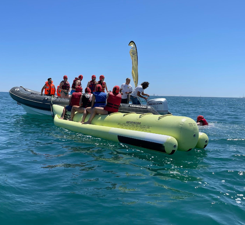 Si estás buscando Banana Boat en Valencia, una actividad divertida para hacer en grupo, con amigos o en familia durante tus vacaciones, nuestra ubicación te permite vivir el mar desde dentro, con vistas espectaculares de la costa y la ciudad.